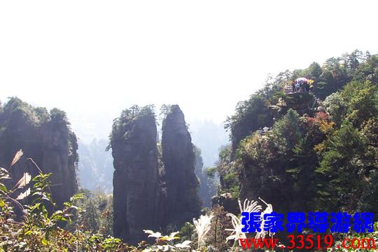 (山頂環(huán)覽線:五指峰、前花園、黑樅垴)朋友們!這里的每一座巖峰都是一件古老的藝術(shù)品,每一座巖峰都隱藏著大自然的無窮奧秘。面對如此壯美雄奇、氣象萬千的砂巖峰林風(fēng)光,幾年前,一位來自東北的女作家,就站在黃石寨(黃獅寨)上感嘆道:看了張家界的風(fēng)光,覺得真可以死了。接下來她又說,看了張家界的風(fēng)光,覺得更有理由好好活了。兩句話看起來前后矛盾,其實不然:前一句是說能見一到像張家界這樣奇美的風(fēng)光,此生足矣;后一句是說人生是如此美好,理應(yīng)更加珍愛生命。大家說對不對? “人生不到張家界,百歲何能叫老翁。”