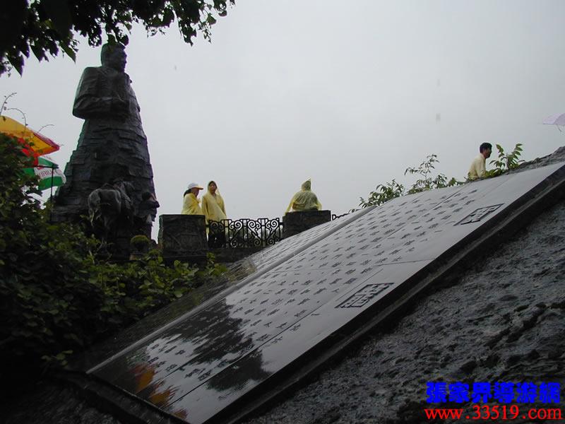 賀龍銅像高6.5米,重9.3噸,是國內(nèi)迄今為止最大的一尊單人銅像。你看他身著軍大衣,那根曾伴他叱咤風(fēng)云的大煙斗捍在手中,那匹曾仰天長嘯的大白馬依偎在膝旁,天風(fēng)吹衣,目光如炬,整個(gè)造型、色彩氣韻,就連軍大衣上的皺褶都和砂巖大峰林渾然一體,與這里的三千奇峰一道頂天立地,櫛雨沐風(fēng)。
