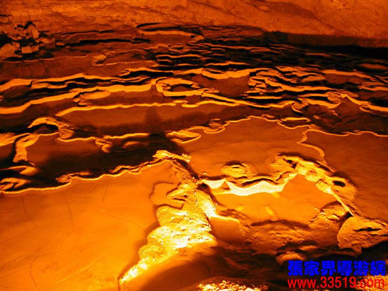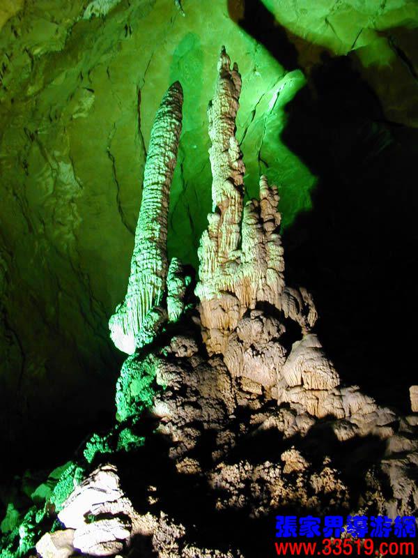 (龍宮)龍宮是黃龍洞十三個(gè)大廳中最大的一個(gè),也是景色最美的景點(diǎn)之一,底面積15000平方米,平均高40米,兩千余根石筍拔地而起,千姿百態(tài),異彩紛呈,或如飛禽走獸,或如宮廷珍藏,有的像巍巍雪松,有的像火箭升空。龍宮后園有金銀兩座花池,清水常溢,花簇盛開。宮頂鐘乳柳垂簾掛,四周壁畫栩栩如生。溶解著各色各樣的礦物質(zhì)的水,從巖層中滲透出來,滴落下來。礦物質(zhì)在洞頂凝固結(jié)晶成倒懸鐘乳石,從鐘乳石滴落的水又把礦物質(zhì)澆疊、堆壘在洞底,而長成節(jié)節(jié)向上的石筍。大家看看這龍宮的造型,領(lǐng)略這磅礴的氣勢。洞內(nèi)最大石筍,高12米、直徑10米的漢白玉天然石椅“龍王寶座”居高臨下,眾多石柱石筍似人似物,維妙維肖,圍著寶座朝拜山呼,幾十座珊瑚亭亭玉立,儼然一支龐大的“宮廷樂隊(duì)”。湖南著名教授羊春秋先生作《寄生草》詞對此進(jìn)行描繪:“百態(tài)千姿模樣,三宮六院門巷。龍王開宴設(shè)瓊漿,猴王偷果鬧天堂,君王納寵擁羅帳。搬演了人間爭攘,匯集了天下奇觀。”
