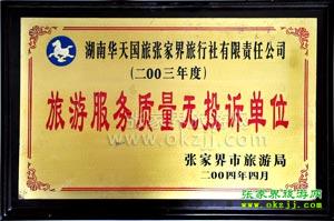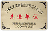 湖南省旅游市場(chǎng)開(kāi)發(fā)工作先進(jìn)單位 2004.2 湖南省旅游市場(chǎng)開(kāi)發(fā)工作先進(jìn)單位 |