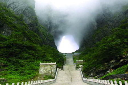 早上8:00長沙火車站集合后,經(jīng)長張高速往張家界市,赴天門山國家森林公園旅游,乘坐“世界第一長高山客運(yùn)索道(全長7455米,高差1279米)”, 體驗(yàn)騰云飛翔的刺激震撼,28分鐘到天門山頂:登張家界之巔云夢仙頂,俯瞰張家界全景,體驗(yàn)凌空獨(dú)尊的豪情, 游覽東線碧野瑤臺景區(qū),觀賞奇妙美麗的盆景花園,游覽盆景石區(qū)、天門翻水、北俯視天門、靈泉、靈泉院,登云夢仙頂,體驗(yàn)“云生腳下、奇峰盡覽、萬象目中”的豪邁感覺。游西線體驗(yàn)鬼谷棧道的驚心動魄,在峭壁云端縱情尖叫。返凌霄臺欣賞城區(qū)風(fēng)光、領(lǐng)略山水長卷的磅礴氣勢,攀登 999 級臺階的上天梯,抵達(dá)天門洞底,感受造化神奇,盡情欣賞天門洞內(nèi)外的壯麗景色。至天門洞體驗(yàn)自然造化的神奇和震撼沖擊。乘觀光汽車體驗(yàn)99彎通天大道奇絕,沿途觀賞七級瀑布、金龜馱元寶、將軍峰、箭桿峰等景觀,天門山氣象獨(dú)特,門洞奇絕,植被豐富,歷史悠久,是歷史文化與佛道文化的神秘載體,是自然景觀與人文景觀的完美結(jié)合,故也是蜜月度假必游之地。