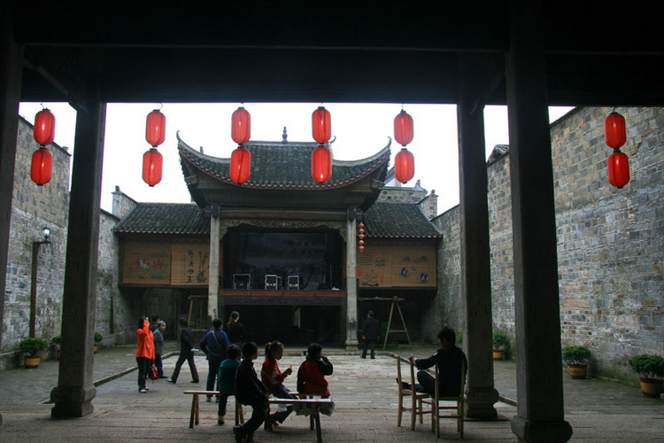 臨河戲臺(tái)幾乎天天都唱戲給烏舡子看。唱他們最愛(ài)看的湘劇,并且都是折子戲而非整場(chǎng)戲,因?yàn)檎麍?chǎng)戲常常要唱十天半月,烏舡子沒(méi)看得完就要返航。折子戲短,最切合烏舡子的??繒r(shí)日。唱的多半是“三國(guó)戲”:《空城計(jì)》、《定軍山》、《走麥城》、《三氣周瑜》,還有《黃鶴樓》、《摘梅桃》……數(shù)也數(shù)不完。戲班子都是由八元堂寧鄉(xiāng)會(huì)館從各地邀請(qǐng)來(lái)的,免費(fèi)公演。招呼戲班子的費(fèi)用由會(huì)館埋單,免不了要請(qǐng)到怡華樓、月華樓、奇珍閣等有名的飯館去吃“八大碗”,唱完戲還有夜宵招待,吃靖港的特色小吃。戲班子當(dāng)然就更賣力。烏舡子上的船老大不但愛(ài)看戲,還蠻會(huì)享受,他們把船搖得正正地對(duì)準(zhǔn)臨河戲臺(tái),和小老婆肩并肩雙雙坐船頭,一邊津津有味地看戲一邊津津有味地喝著靖港谷酒,吃著從靖港街上買來(lái)的香干子和鹵菜,搖頭晃腦,張嘴咋舌,樂(lè)不思蜀。也有許多古鎮(zhèn)居民來(lái)看免費(fèi)戲,他們常常爬到烏舡子上,與船老板和和老板娘一起看戲,船老板熱情大方,會(huì)讓出座位來(lái),邊看戲邊和本地居民扯談,對(duì)古鎮(zhèn)也就更加熟悉了解。