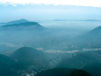 瀏陽(yáng)城西約15公里神嶺一帶,三峰鼎峙,蔥青入郭,中間有一大湖,曰巨湖,其山也叫巨湖山。巨湖煙雨乃指春夏之交,清晨山頂石煙繚繞,霧入云霄,儼若雨下,變幻萬千,周忠信詞曰:“煙雨暗層巒,西望茫茫,樹墟城郭霧中看。氣涌潮心膚寸引,釀就輕寒。幾縷向空翻,數(shù)點(diǎn)飄殘,瀟湘彭蠡合奇現(xiàn)。疑是南宮傳筆意,水墨溪山。”