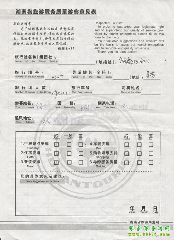 - 游客夏先生為表揚導游李姣姣寫來表揚信致我張家界... [14811]