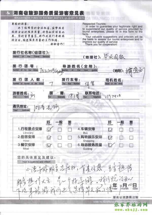 2009年9月劉先生反饋說:我們玩得很開心,下次還找華天國旅
