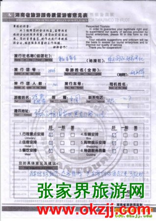2010年4月9日重慶張先生一行10人張家界鳳凰旅游質(zhì)量反饋