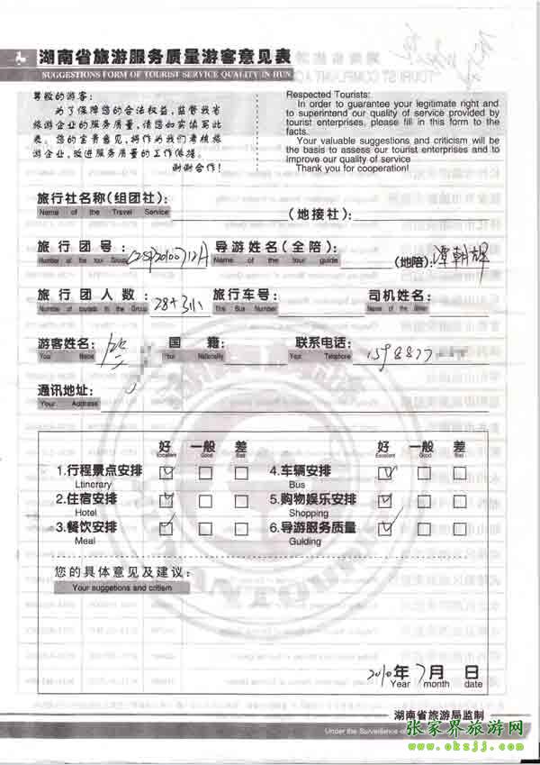 - 游客夏先生為表揚導游李姣姣寫來表揚信致我張家界... [14811]