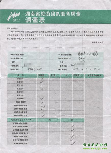 2011年5月16日應(yīng)先生一行3人旅游質(zhì)量反饋