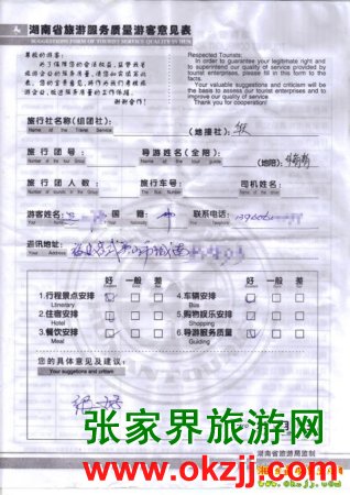 - 游客夏先生為表揚導(dǎo)游李姣姣寫來表揚信致我張家界... [14811]