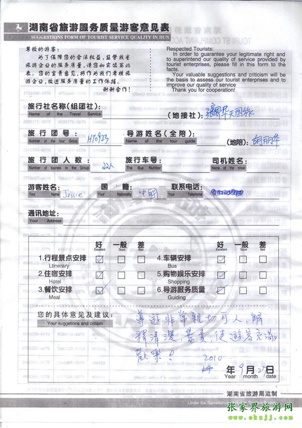 - 游客夏先生為表揚導(dǎo)游李姣姣寫來表揚信致我張家界... [14811]