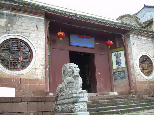 這是一處具有濃厚民族特色的建筑群,有大門、正殿、戲臺20多間屋宇,并有天井、天池、回廊,還設有“五福”、“六順”兩門。