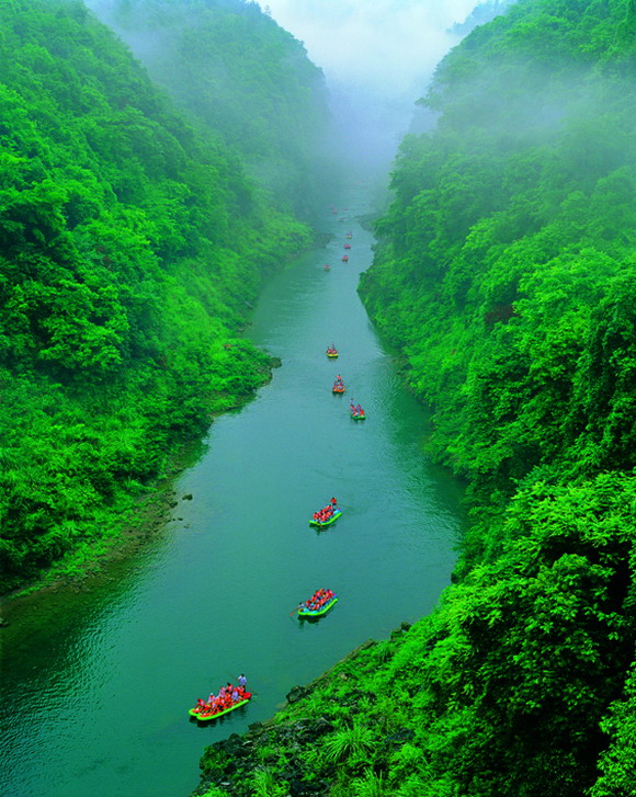 7點準時等在萊頓大酒店門口,猛洞河漂流180元/人,漂流的車一般會來接參加漂流的客人的,上了車已經(jīng)有好幾位游客,然后車子又去接了幾位,7:30人接齊,離開張家界去猛洞河,車程約1個半個小時,漂流約2個半小時。在萊頓大酒店的那個晚上張家界半夜打雷下雨,我們想今天水很大,漂流會很刺激。到了那邊才知道上游建了水壩調(diào)節(jié)水量搞平均主義,所以漂流的驚險度一般般了,后來去鳳凰公路上比較顛簸,我戲稱可以將車當(dāng)船補足漂流的感覺,呵呵。不過瀑布因此壯觀不少,漂流沿途至少見到有七八條瀑布,非常漂亮。