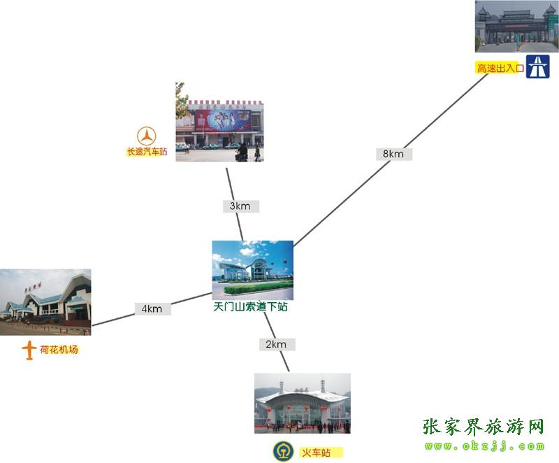 ![]() 天門山索道下站距荷花機(jī)場3公里,距火車站0.5公里,距長張高速公路出口也僅8公里之遙。景區(qū)周圍另有張羅、張清、張桑等公路通往省內(nèi)各個方向。進(jìn)城公路和市內(nèi)主要道路均安裝了交通指引標(biāo)示,寬暢的道路和清晰的指引路牌使得游客抵達(dá)天門山特別方便順暢。